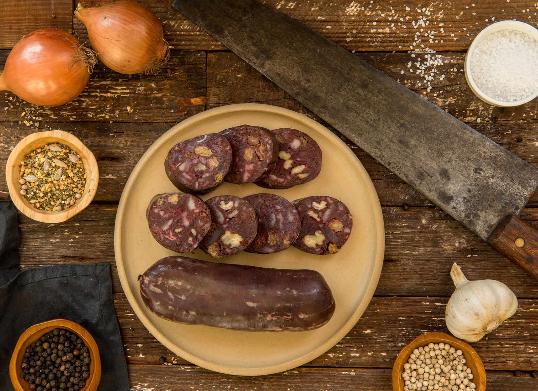 Morcilla Vasca (with grapes & nuts):A unique take on blood sausage that combines sweet and savory elements with the addition of grapes and nuts, creating a rich and flavorful dish.