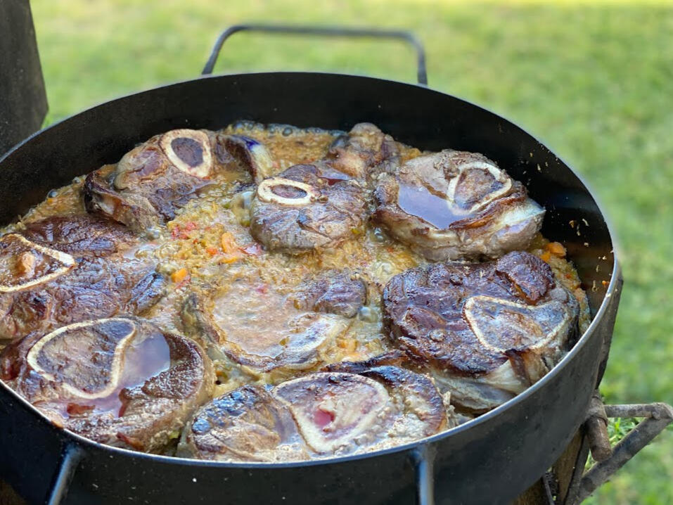 Osobuco al Disco:A hearty stew made with beef shanks cooked in a circular "disco" pan, simmered with vegetables, wine, and a flavorful sauce.