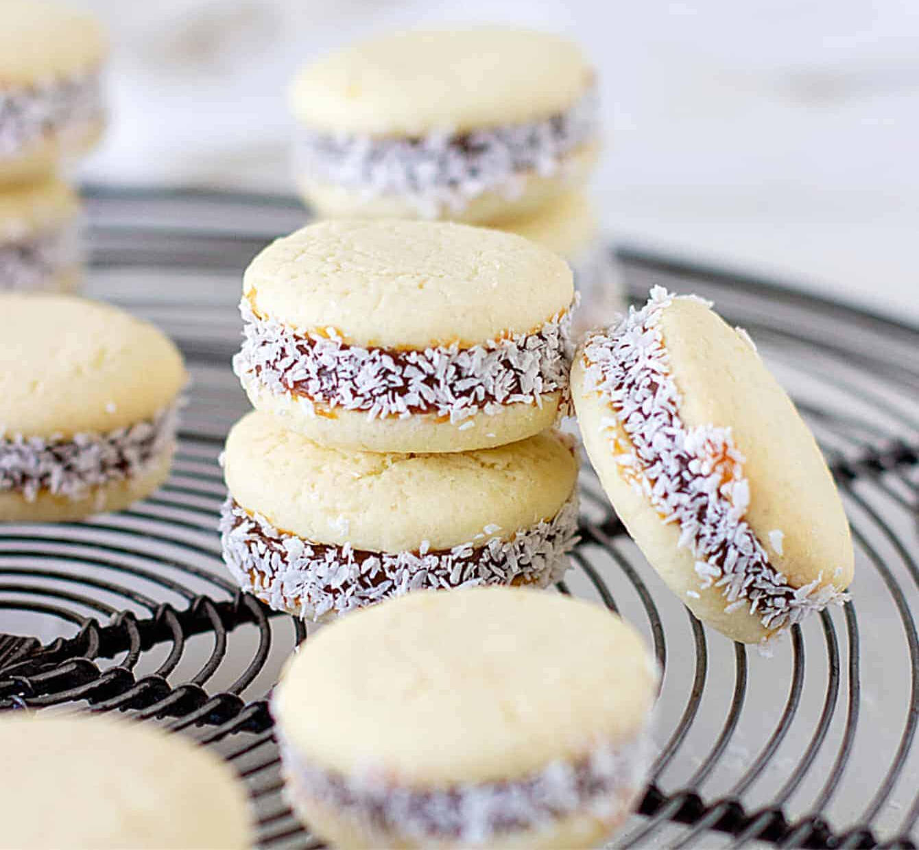 Alfajores:Delicate sandwich cookies filled with dulce de leche or other sweet fillings, then covered in chocolate or powdered sugar.